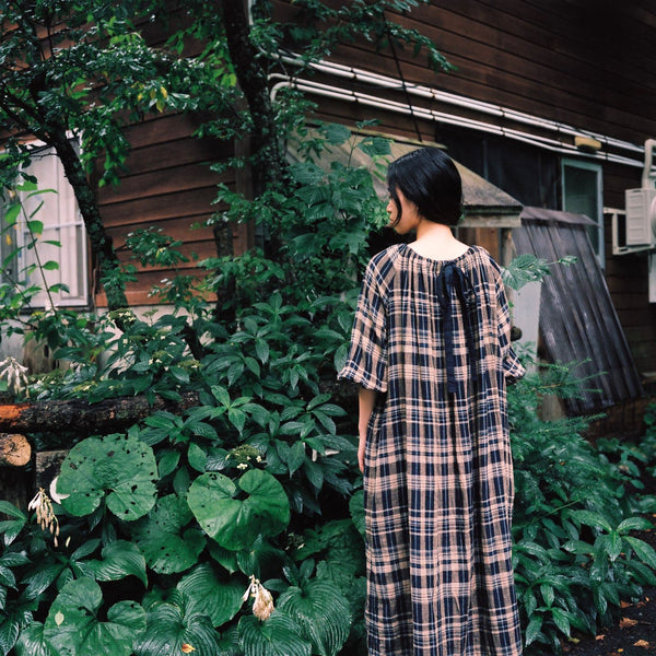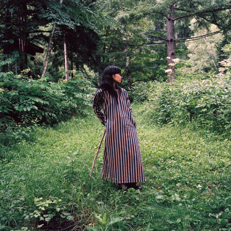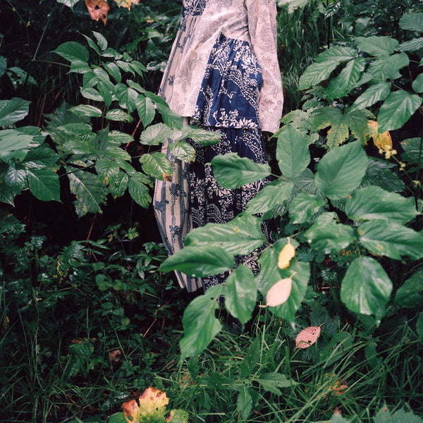 Woven at 110cm width on vintage looms, cut to preserve the selvedge edge, finished with ultra-fine rolled hems, and printed by hand—created not to imitate vintage, but to become it.