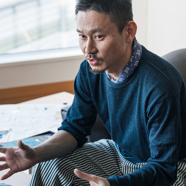 Mr. Sugahara speaks about 45R’s rare, end-to-end craftsmanship—where yarn, indigo, and time shape each T-shirt.