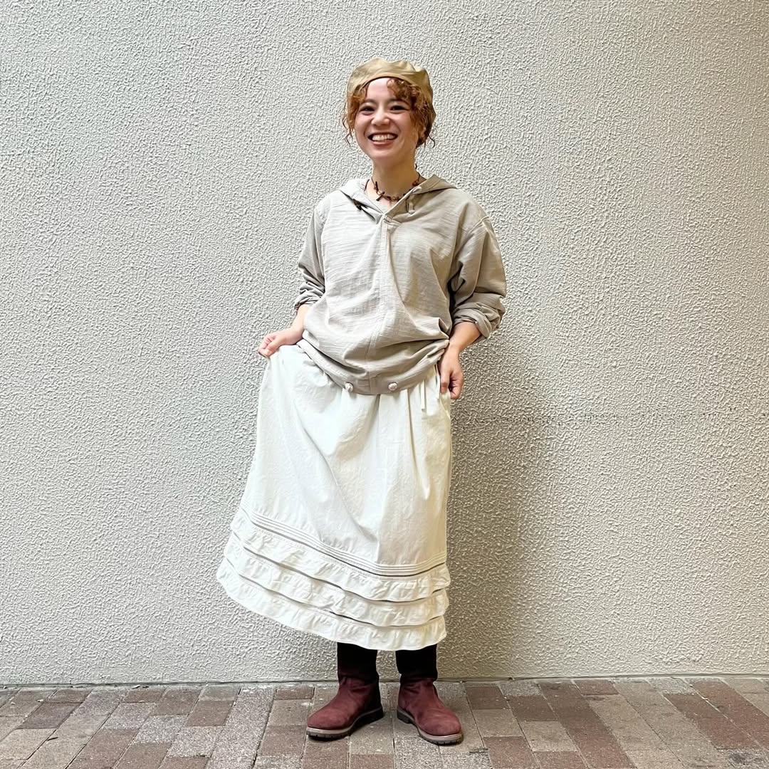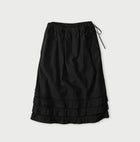 Frills are adjusted to match the fabric's character, arranged elegantly. A petticoat skirt with an elastic waist that elevates any look.