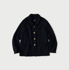 Reassuring thickness with metal buttons, stitching puffed to a nice finish. A versatile jacket.
