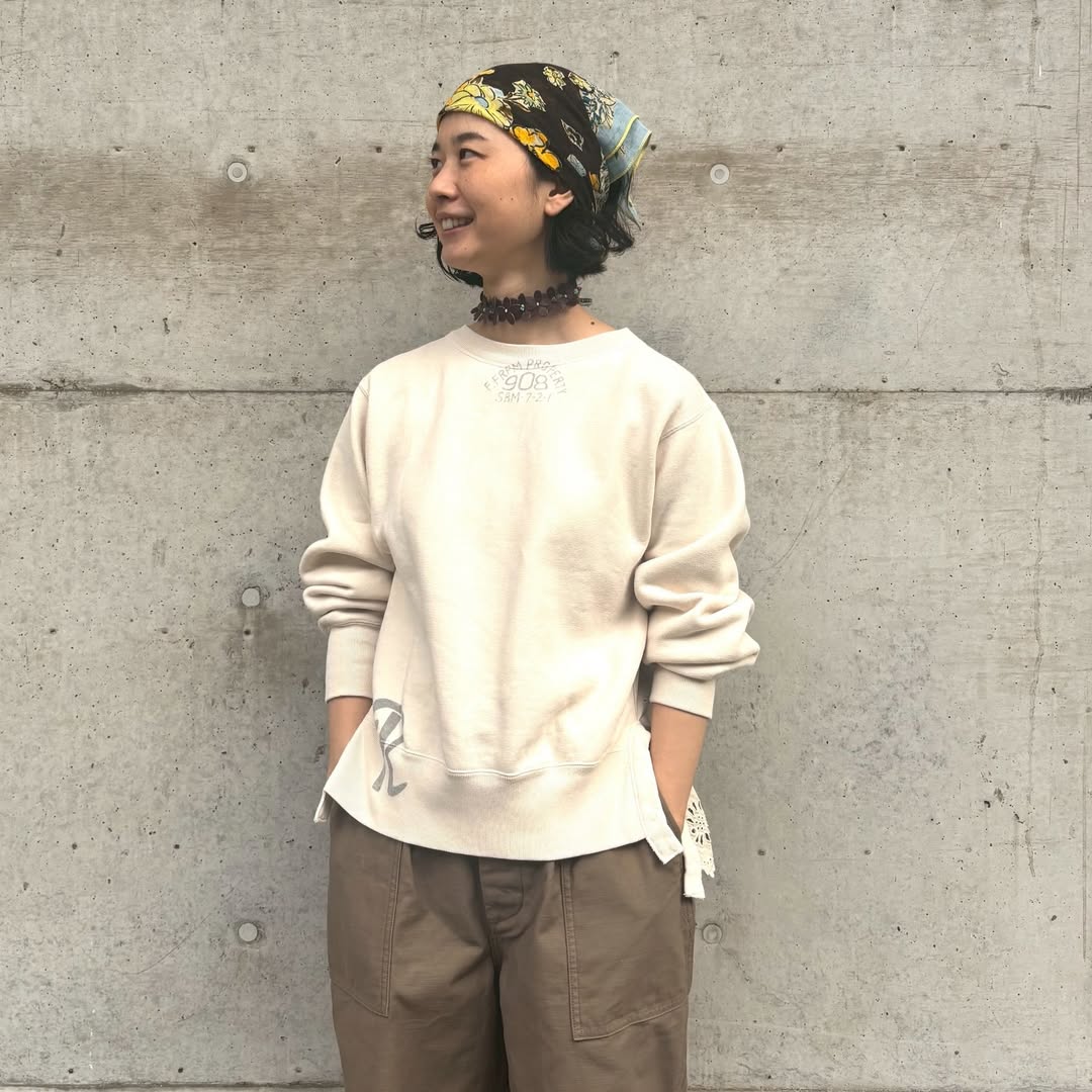 When worn, the shoulders fall softly for a relaxed silhouette. A binder that drapes along the side hem creates a ribbon-like accent—an easy, charming detail that expands the ways you can style it.