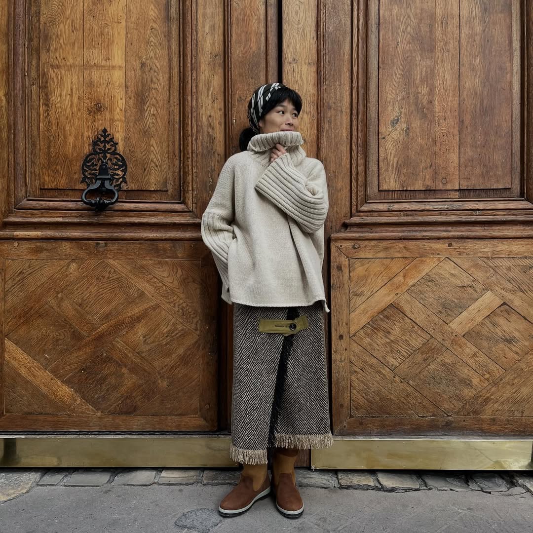 This season’s herringbone stands out with a striking contrast and an elegant shimmer reminiscent of gold, blending sophistication with subtle strength. A refined creation by 45R that embodies the essence of Japanese craftsmanship.