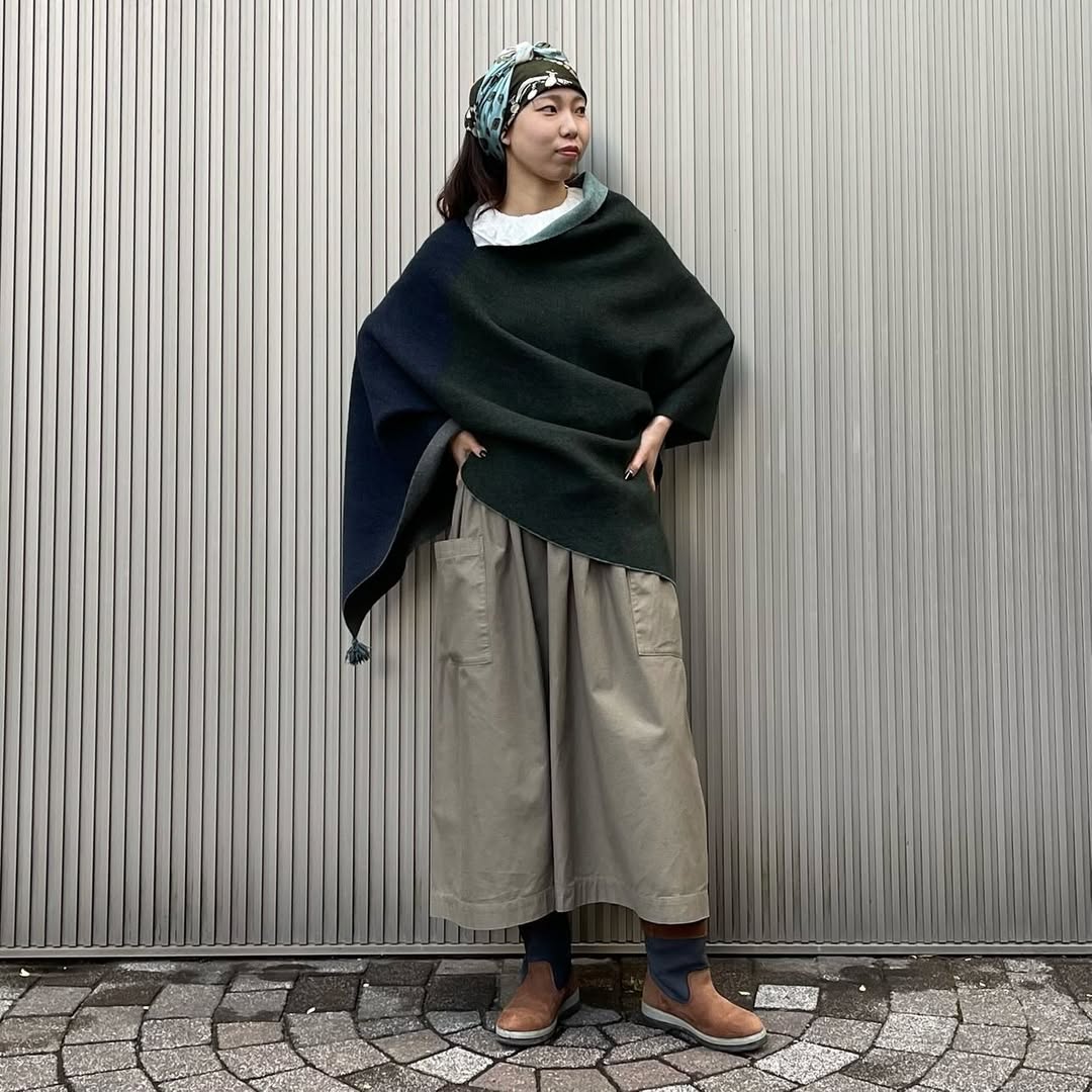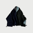 Pom-poms along the edges add a playful accent. This double-sided knit allows you to enjoy both color combinations. A poncho that feels light and uplifting, both in spirit and step.