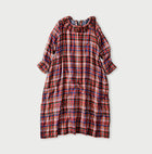 45R Gauze Doublecloth Frilled Collar Plaid Dress