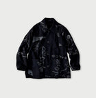 This densely woven duck fabric becomes even richer in indigo, making each stitch a deliberate effort. Slowly and firmly dropping the needle, picking up each thread—sewn carefully over time. The simple box silhouette highlights the playful artwork.