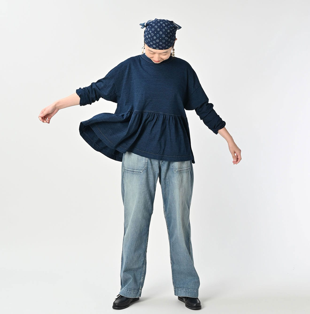 Dyed repeatedly for a deep, saturated tone, the indigo reveals subtle variations after many washes. Every shade and every moment is unique—an indigo that grows ever more beautiful with time, a color we never tire of. It reflects the timeless elegance of Japanese craftsmanship and the enduring spirit of 45R.