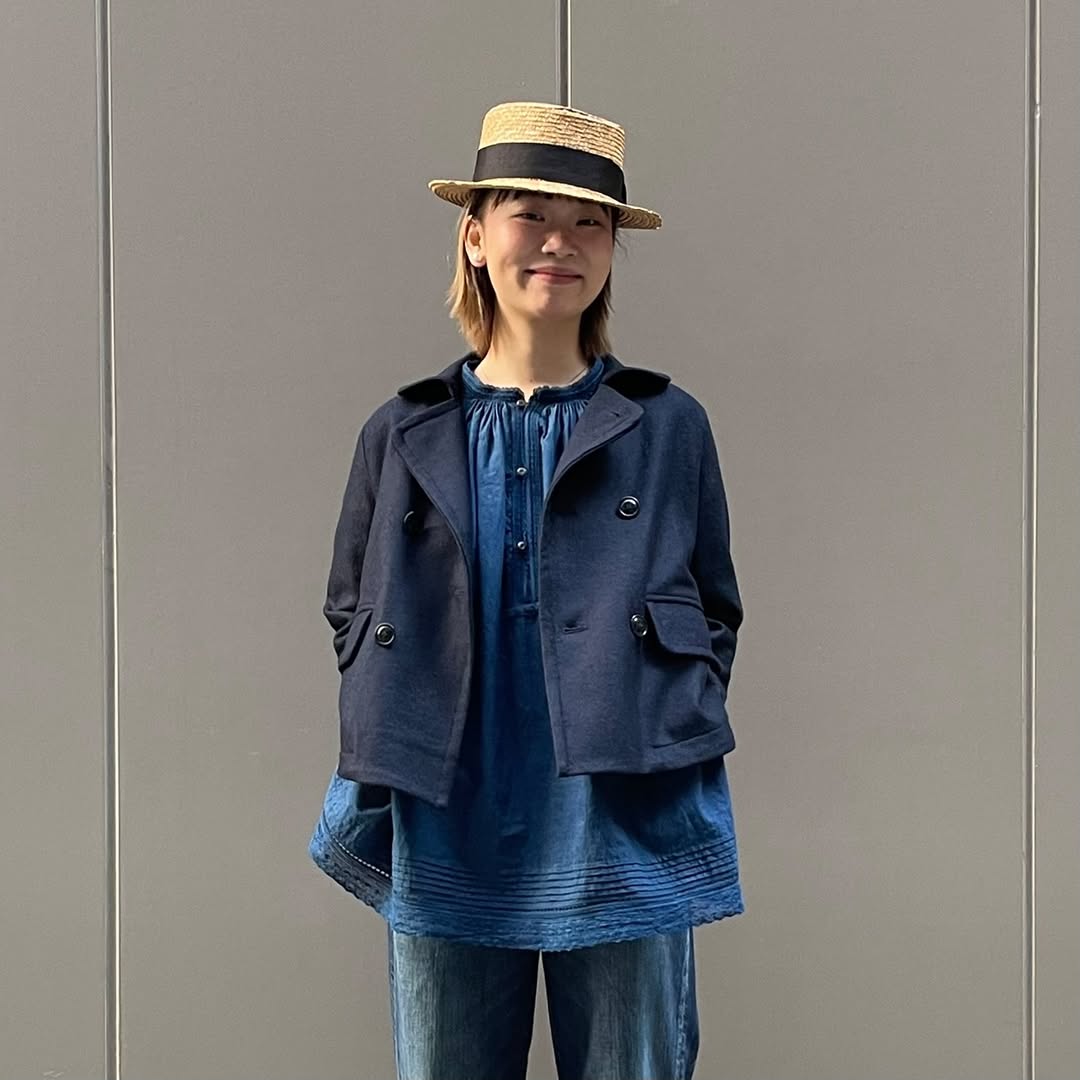 By blending nylon, the fabric became lighter and fuller—so comfortable you could dance in it. With a soft and smooth texture, this compact double-breasted jacket is inspired by Annie—pure, positive, and full of life.