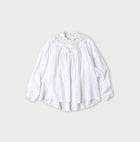 Twisted and knotted again and again, a single ribbon traces delicate patterns like a handmade ladder. With this slowly crafted ribbon lace, flowers bloom upon the hand-spun, hand-woven khadi.