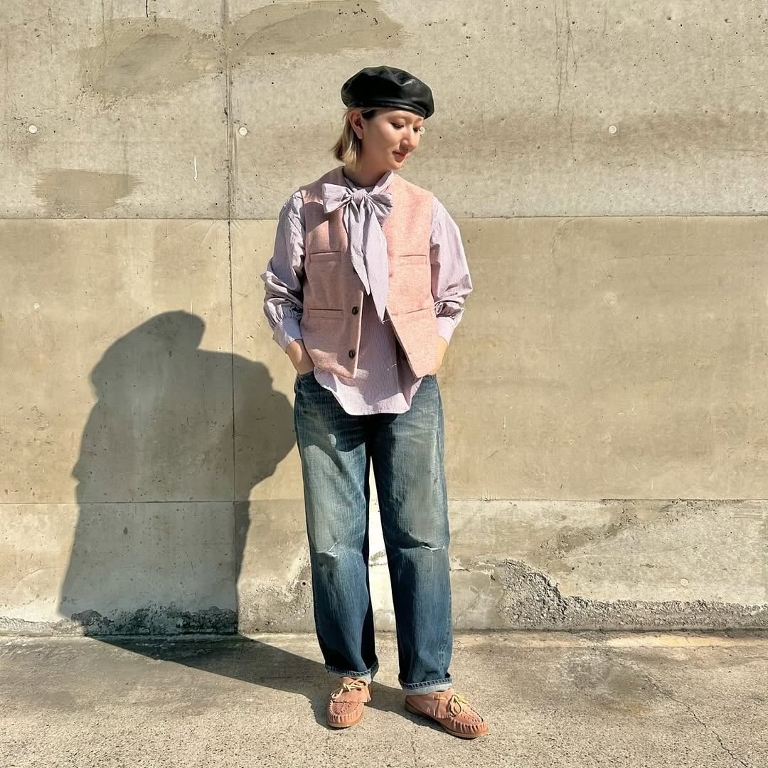 The hem is slightly cropped, and the softly puffed sleeves add a feminine touch. Tie the wide ribbon into a neat bow, and you've got a charming Ivy League-inspired look. The ribbon is also removable, offering flexibility in styling. This piece quietly reflects the Japanese craftsmanship at the heart of 45R.