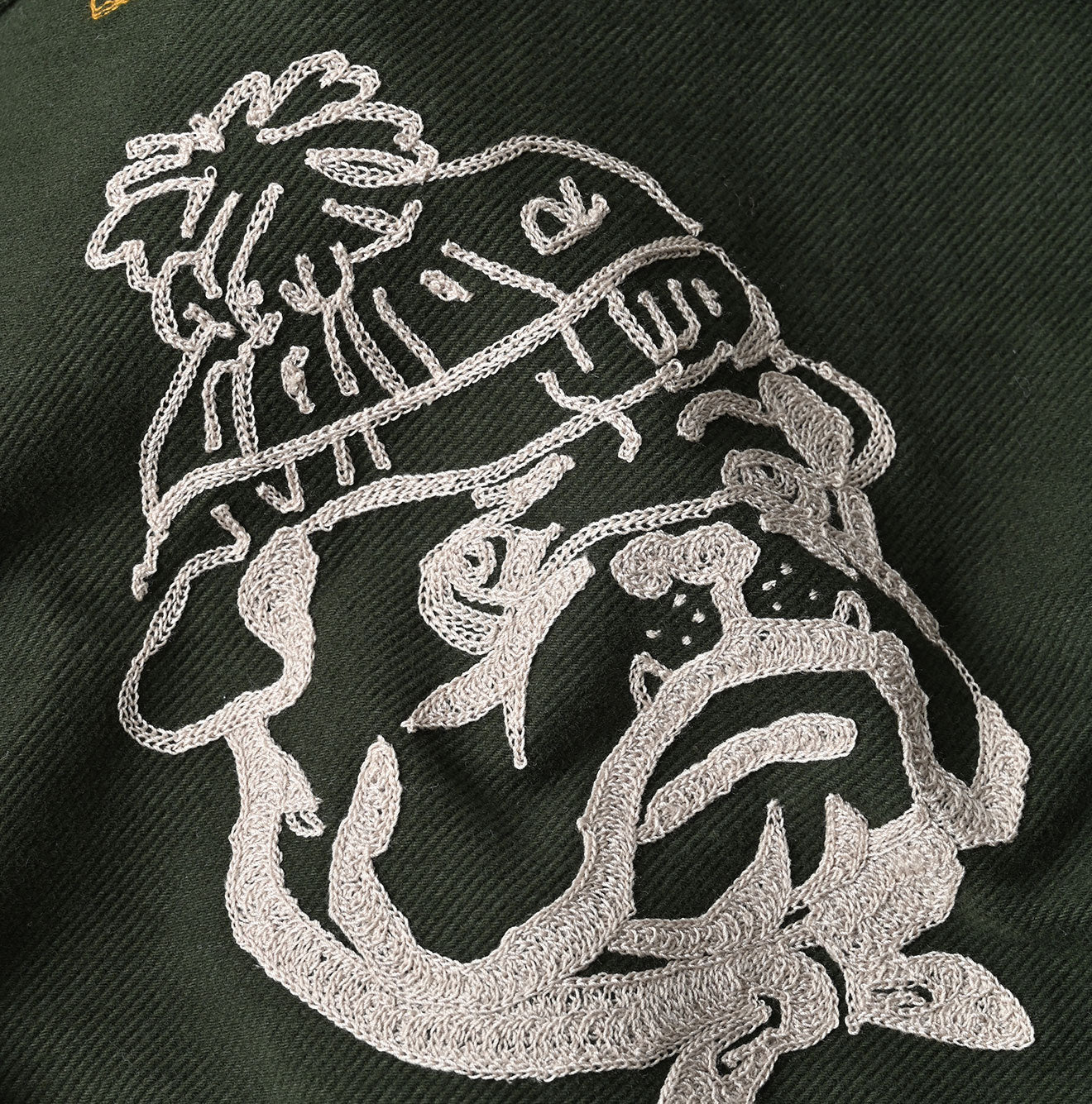 A touch of stretch helps the jacket keep its shape beautifully, season after season. Tailored in a slim, short G-jacket silhouette, it feels more urban than workwear—clean, modern, and effortless. The back is finished with an embroidered Blue Maru—45R’s iconic, playful signature.