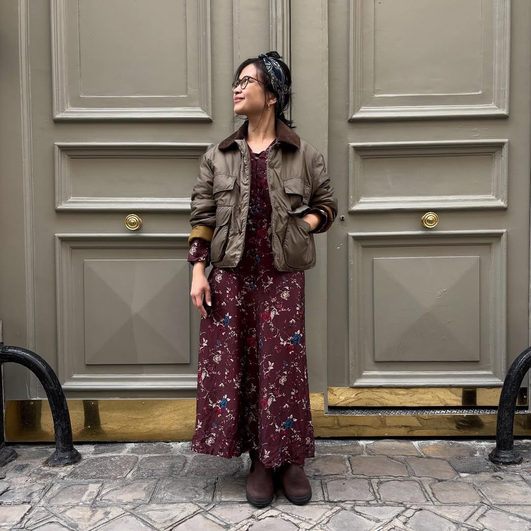 This year’s nylon is thin yet densely woven. Made with 70-denier yarn, the fabric is strong but feels lighter than expected. A light filling gently holds warmth, while the lining is finished with bold quilting.