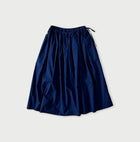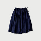 We diligently craft the material so its character shines. Because the indigo is so beautiful, the shape is kept as simple as possible. A waist tie and pockets—essential elements of any gathered skirt—complete the design, finished with a little ONEONE embroidery for a charming touch.