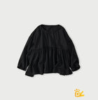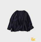 A gathered blouse you simply pull on. Soft gathers and a ribbon at the back give it a feminine charm.