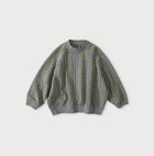 Regimental stripes—the traditional pattern born from cricket—knitted in. Relaxed around the shoulders for easy comfort. A dolman sweatshirt with a shorter length and playful drape.