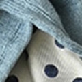 Materials are our treasure. We do not waste even the smallest scraps from making clothes—we use them with care. A spirit of mottainai, given form. Super gauze paired with vibrant silk. The reverse is the true face—both sides can be used, so we chose colors that blend well together.