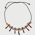 Old tonbo-dama glass beads gathered together, connected with leather motifs and cord. Each bead carries its own pattern and shape—lively tonbo-dama paired with spiral motifs make for a playful accessory.