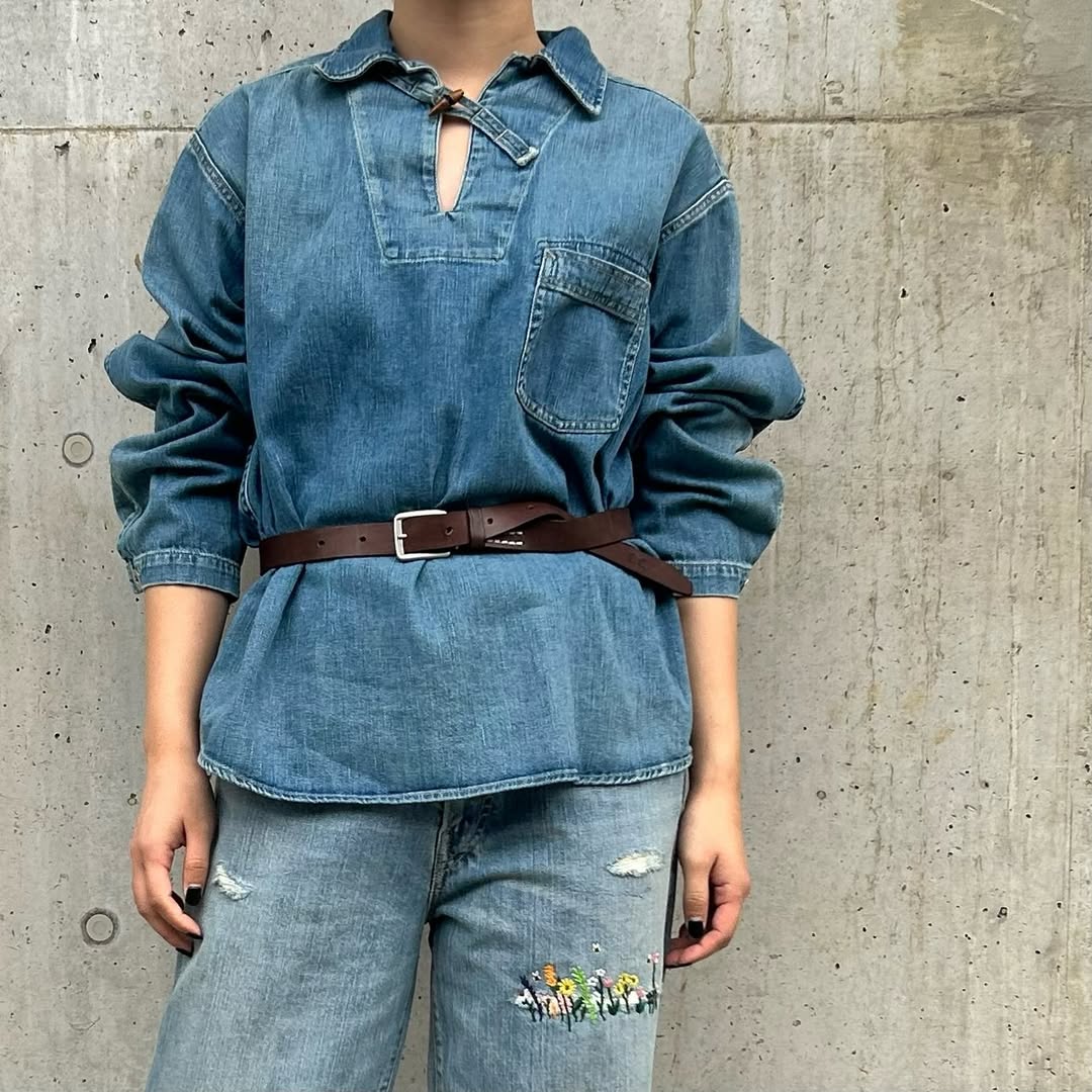 This thick, lustrous vintage leather belt adds a sense of weight and sophistication—tying your look together with quiet strength.