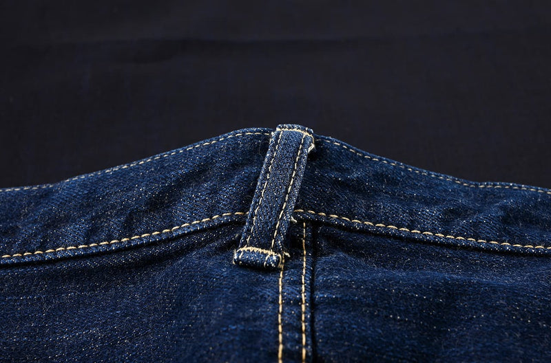 我們的丹寧有兩種色調:Indigo與Sumi-Ai。Sumi-Ai在Ai Indigo染色之後,再經過傳統墨染的工序,使色澤更為深沉,呈現近乎黑藍的調性。