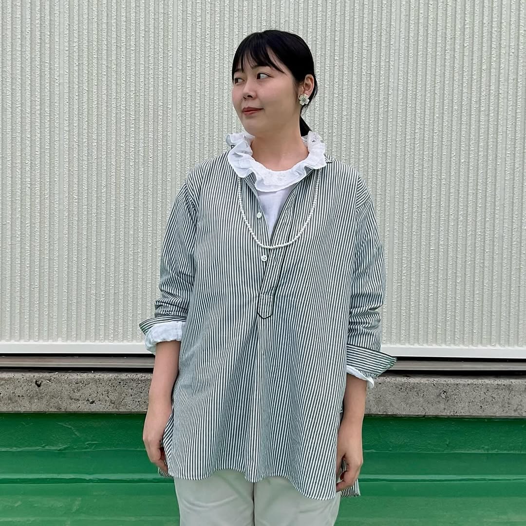 45R Gauze Doublecloth Frilled Collar Blouse