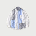 以俏皮方式拼接而成的牛津布。剪裁灵感源自阿罗哈衬衫 — 更短的衣长,更宽的身幅。